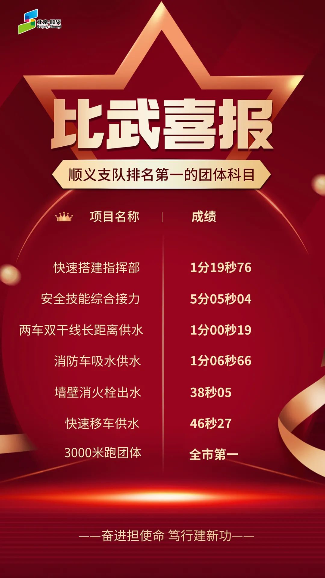 顺义支队共有128名消防指战员和企事业单位专职队员参赛,全体指战员上下齐心,各条战线通力协作,全体参赛队员拼尽全力,不断突破极限、超越自我,用踏实努力和奋勇拼搏的赛场表现最终摘得桂冠。