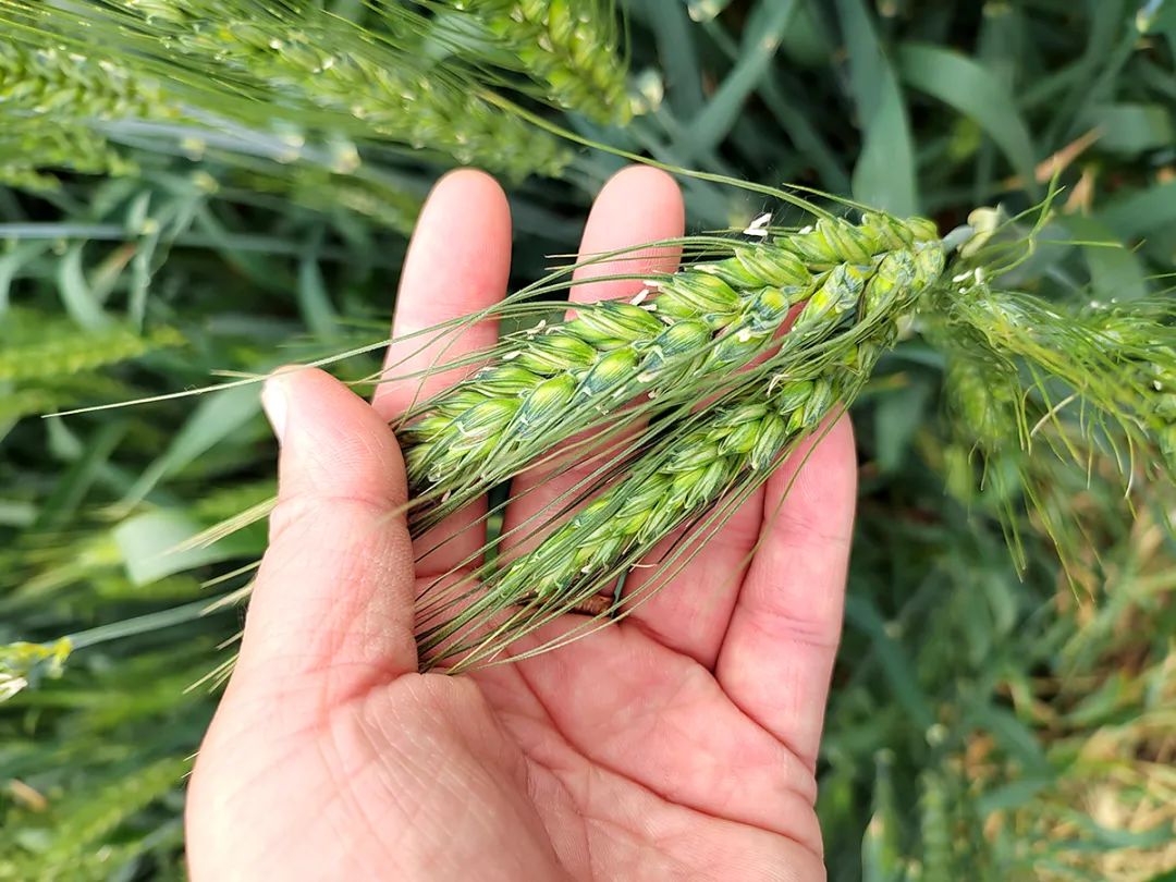 北小营镇试种的新品种小麦穗粒饱满。
