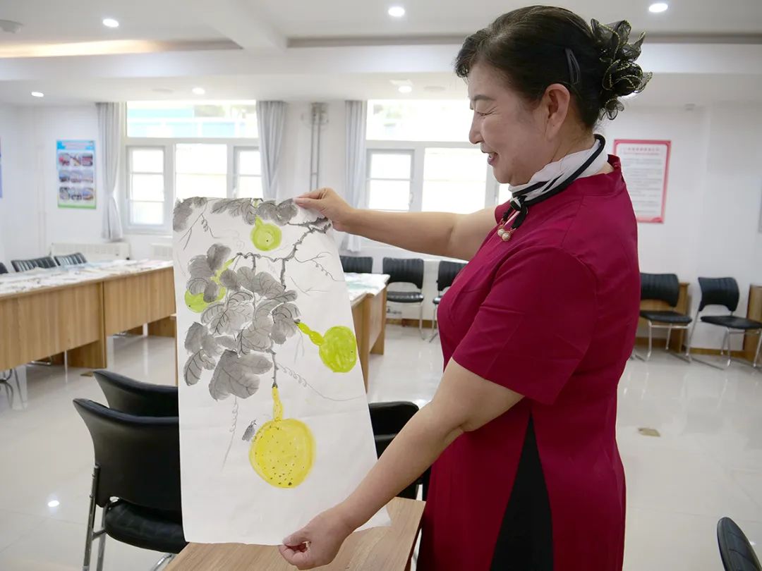 吕学辉听到后,回家拿了几张自己的作品供队里选择。那次演出,因为她的画增色不少。“我是退休之后学的国画,当时还没学多久,交的是老师留的作业。”吕学辉说。