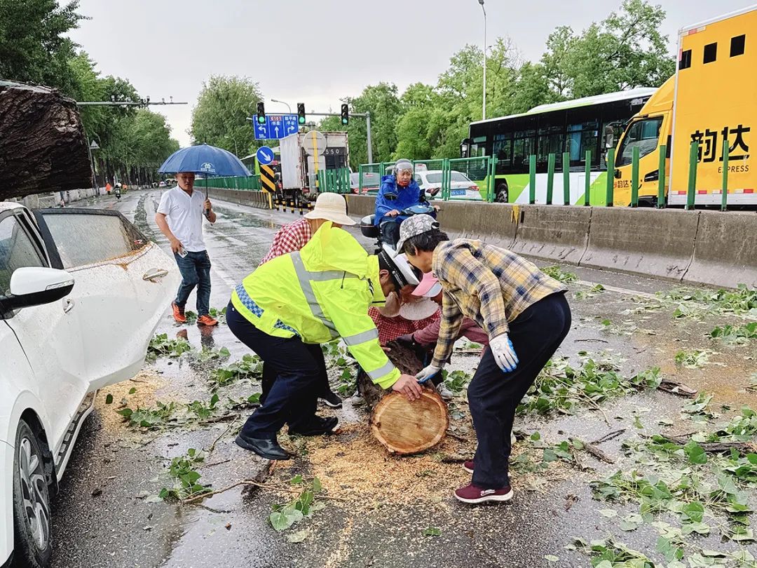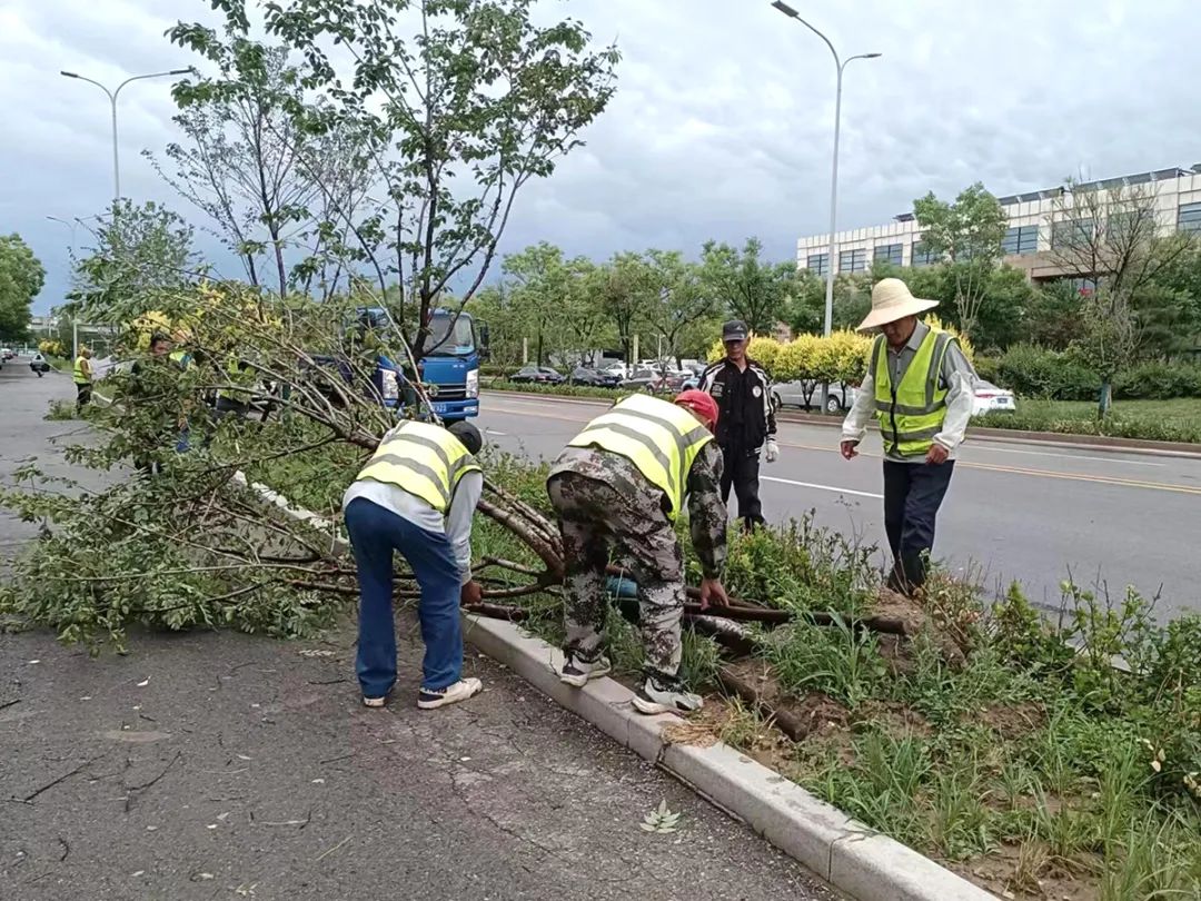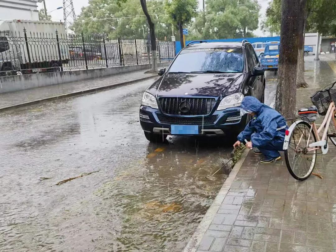 南彩镇彩丰社区工作人员清掏雨箅子。