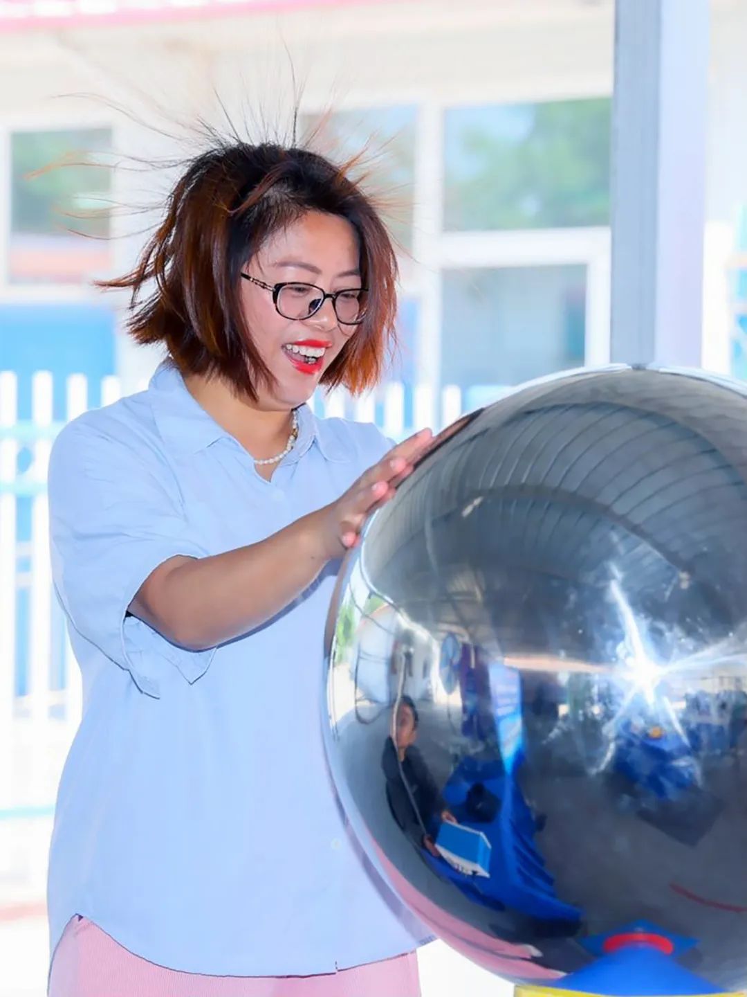 在牛栏山镇第一社区,健康科普边边看、静电感应起电机、刺客机器人对抗、穿越火线等12个科普展品吸引了不少居民驻足体验。每个展品旁都有讲解员为大家进行指导,让居民了解展品的科学原理。