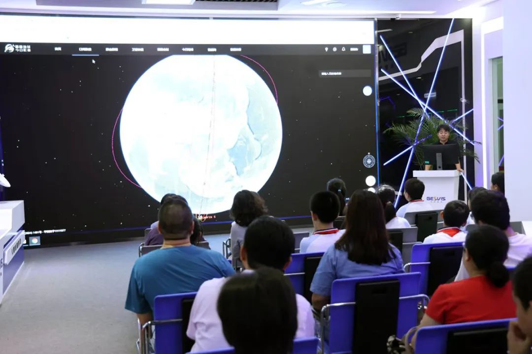 在正元地理信息集团股份有限公司,讲解员带领大家参观了科技体验馆。置身于数据获取、数据处理、数据应用等展厅,大家深入了解了科学原理在地理信息、地下空间、航测遥感、三维城市、智慧管网等方面的应用情况。