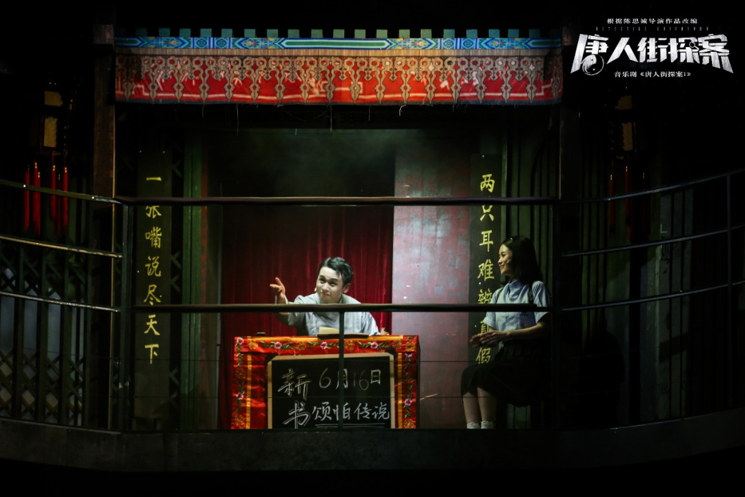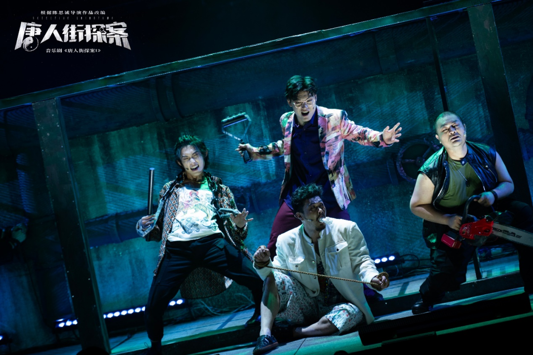舞台剧《唐人街探案1》以舞美与灯光的现场配合,在光影交叠之中,全力打造出颇具电影画面感的悬疑氛围。开场曼谷众人群舞的热烈场面,以及秦风偷偷潜入警局时闯关游戏界面化的调度处理,“百鬼夜行”中的明暗交替与低声吟诵,构成了全剧多风格音乐的可视化。