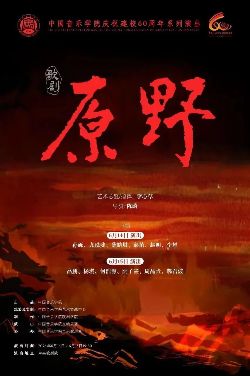 在京建组!中国音乐学院庆祝建校60周年首推大剧歌剧《原野》汇聚业内顶尖艺术家