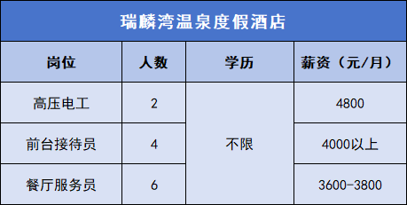 工作地点:南彩镇瑞麟湾温泉度假酒店