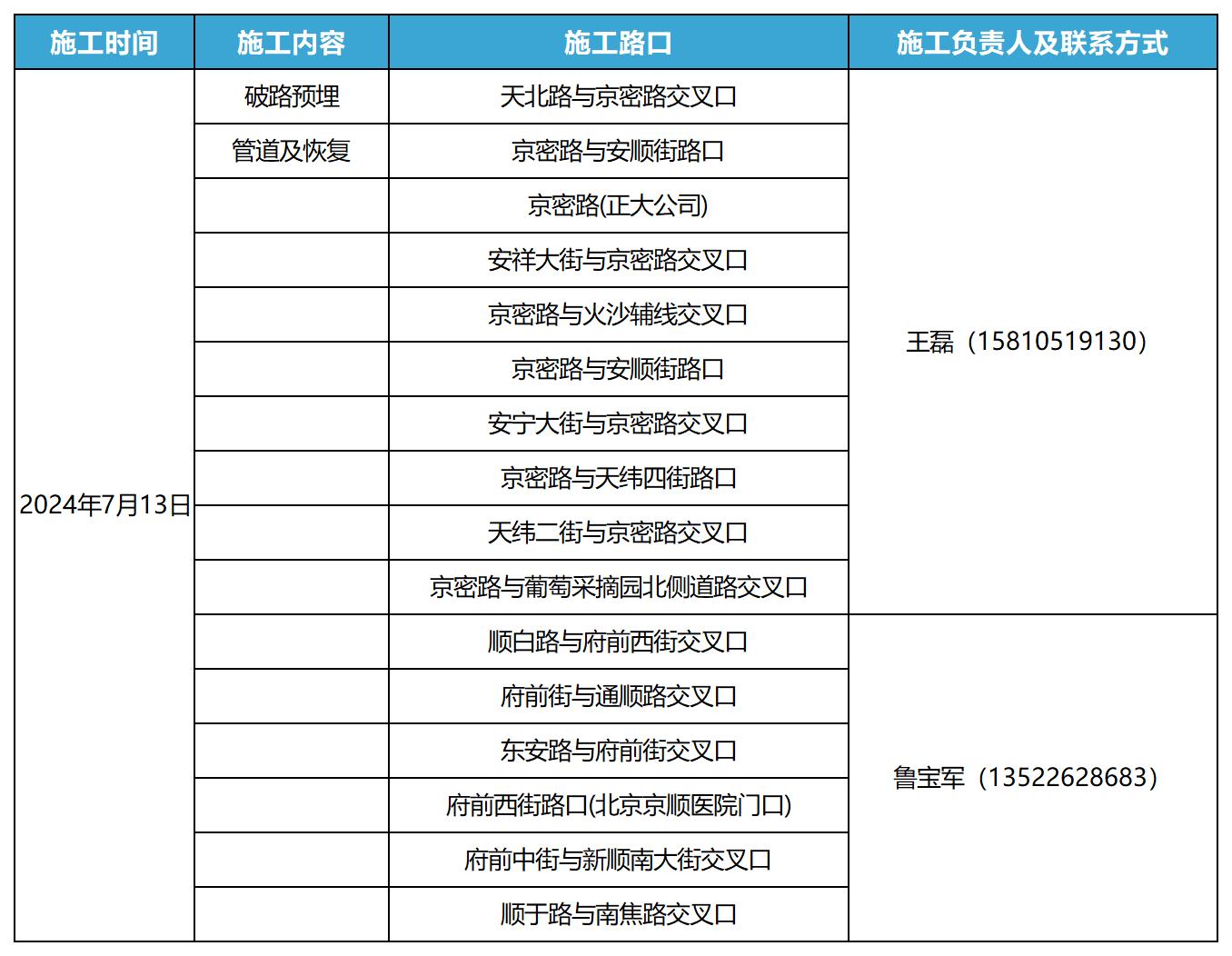顺义区融媒体中心消息 因“北京市高级别自动驾驶示范区3.0扩区建设项目”施工,7月13日具体施工地点主要涉及:天北路与京密路交叉口、顺白路与府前西街交叉口、京密路与火沙辅线交叉口等,如附表所示。为避免拥堵、确保安全,请广大市民提前规划好出行路线。