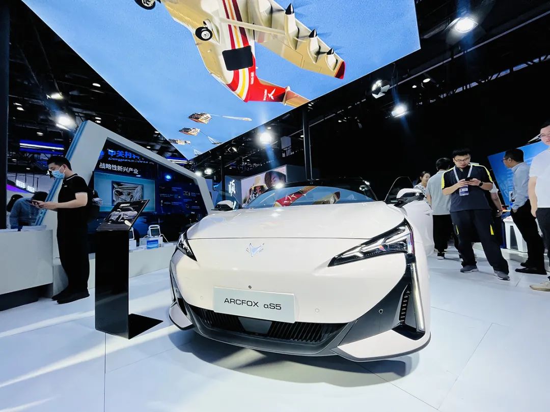顺义区57件展品各有特色。展区右侧,北汽集团的极狐阿尔法S5令人眼前一亮。阿尔法S5四驱零百加速仅需3.7秒,最大马力530匹,最大功率390千瓦;搭配全域800V高压平台,风阻系数仅为0.1925Cd,为全球量产车中最低,体现了北汽在空气动力学设计上的领先技术。