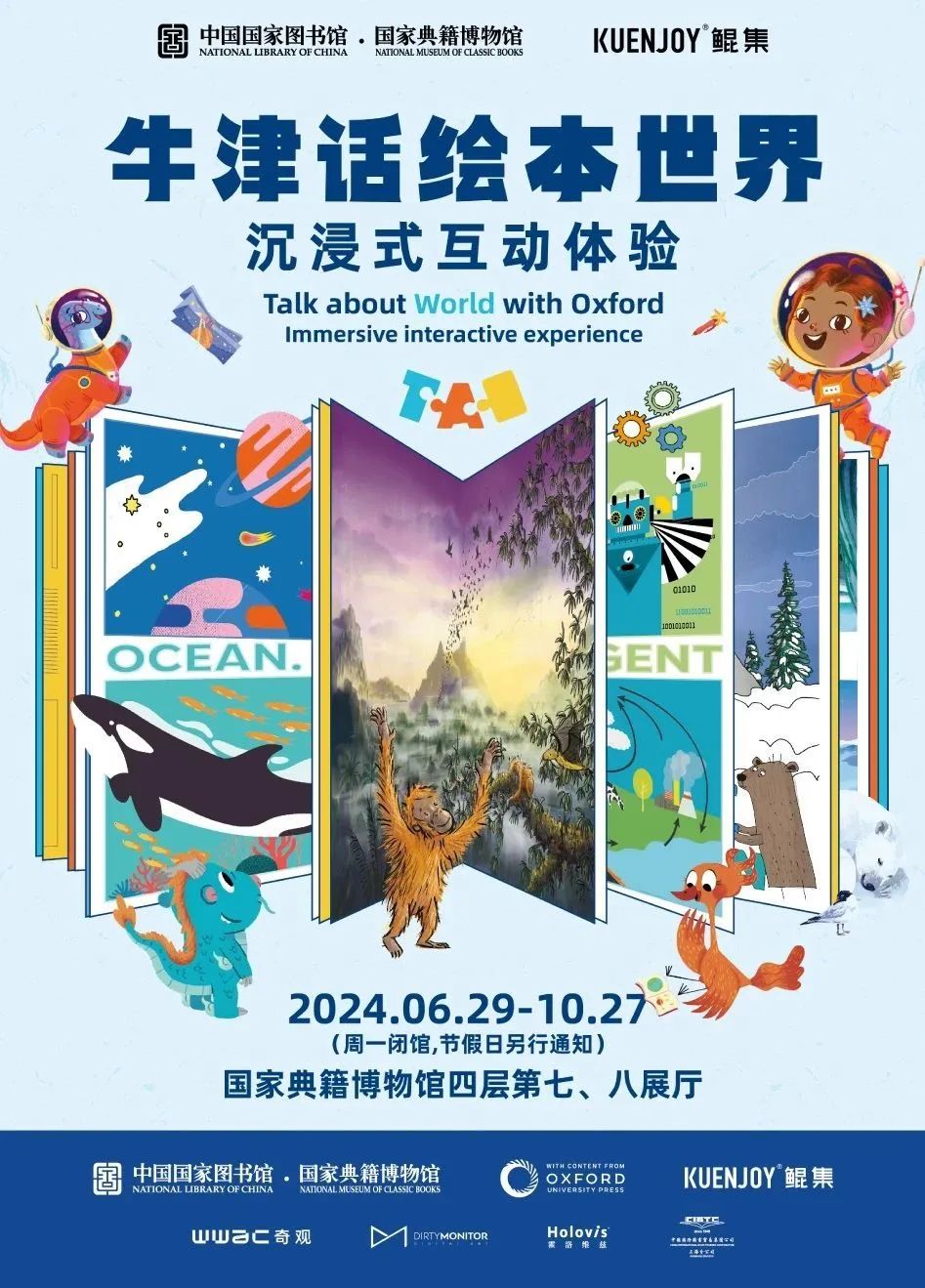 “牛津话绘本世界”是一个沉浸式互动体验展,于2024年6月29日至10月27日在国家图书馆(国家典籍博物馆)第七、八展厅举办。该展览以牛津大学出版社的儿童绘本和启学资源为核心,共设置了“好奇心之旅”“沉浸之旅”“治愈之旅”三个展区,通过双语策展的形式,融合权威知识与温馨故事,并借助丰富的沉浸式互动体验方式,引领孩子们踏上奇妙的旅程。