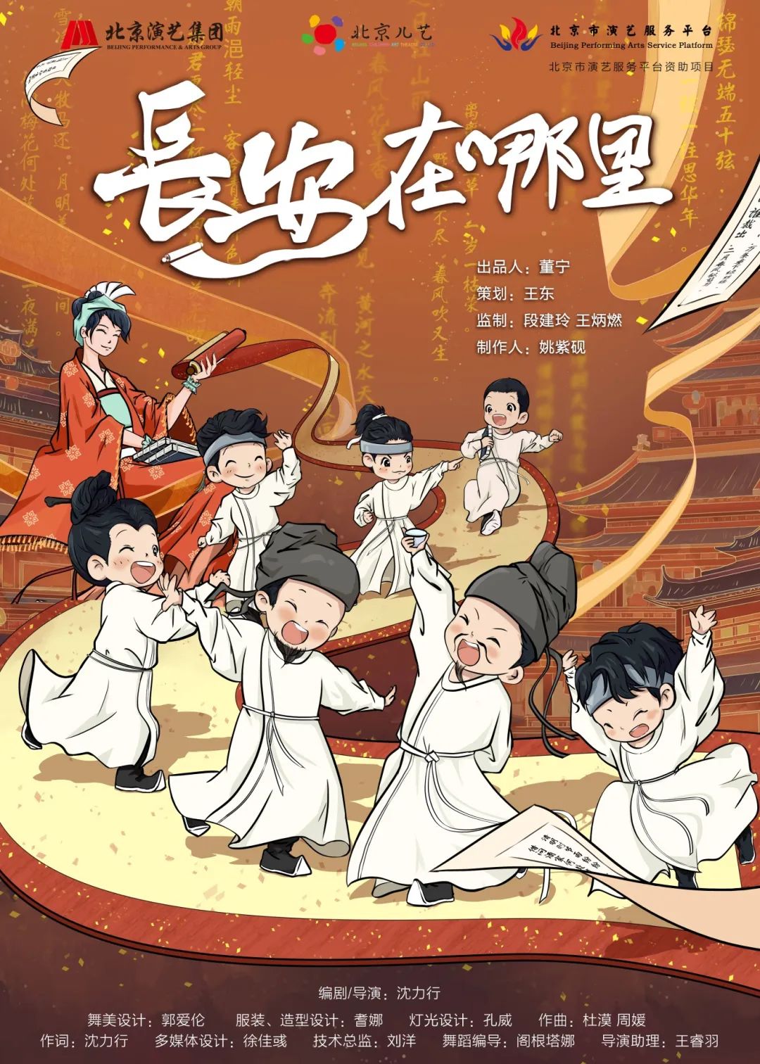 儿童剧《长安在哪里》由北京儿艺青年导演沈力行担任编剧及导演,集合业界知名主创以及北京儿艺专业演员共同打造,融合了诗词、古风、情感、现代的独特剧作,让观众领略盛唐时代的风华绝代,感受诗仙李白、诗佛王维、诗圣杜甫的非凡魅力。剧中耳熟能详的名句来自15位著名唐代诗人的42首诗作,除了用诗句作为台词介绍人物以外,剧中还设计了贯穿全场的对诗互动环节,增强了大小观众们的参与感。表演中就让孩子们在欢乐中学习,在笑声中成长,感受着那个时代的独特魅力。