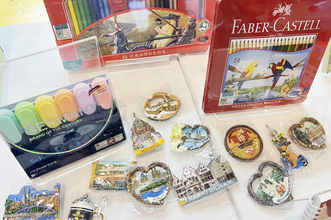 展区里的辉柏嘉彩铅、填色册、水彩颜料
