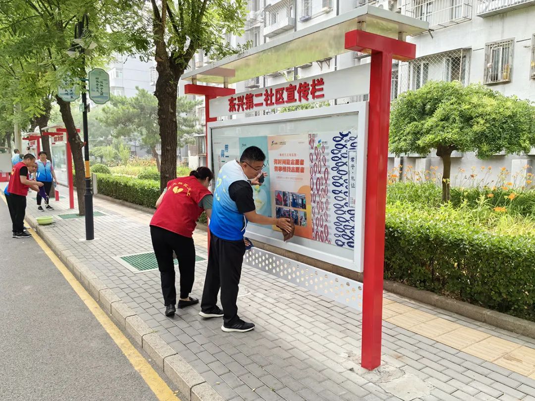 擦拭宣传栏、清理绿化带、劝导不文明行为……在东兴二社区“月末清洁日”活动现场,在职党员手持抹布、扫帚等工具,分组行动,为美化社区环境贡献力量。