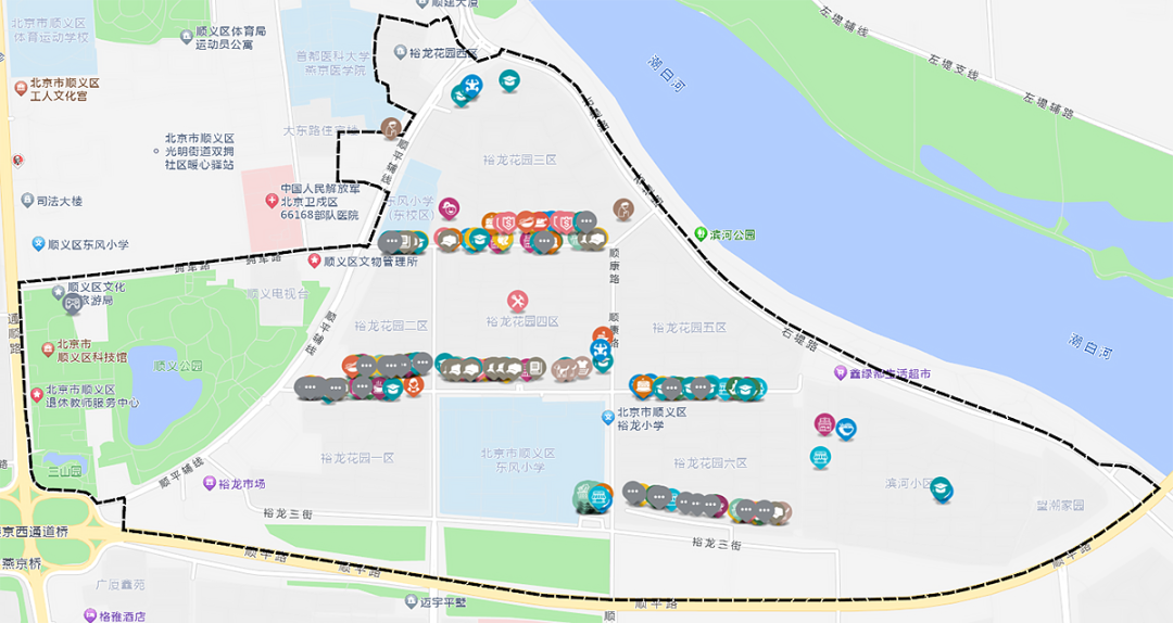 裕龙-滨河便民生活圈包括8个社区,面积约2.07平方公里,服务人口约3.3万人,主要以裕龙一街、二街、三街及微尚生活广场为业态集中区域,圈内引进了滨河裕龙市场、叮咚买菜智慧商店等品牌。