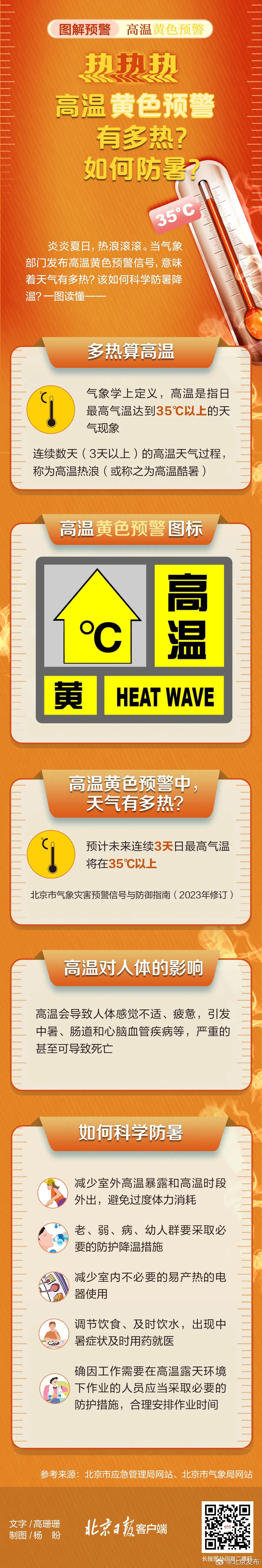 顺义区融媒体中心消息 今日(7月19日)16时20分,区气象台继续发布高温黄色预警。预计,7月20日至21日,每日12时至16时顺义区最高气温将在35℃以上,请注意防范。