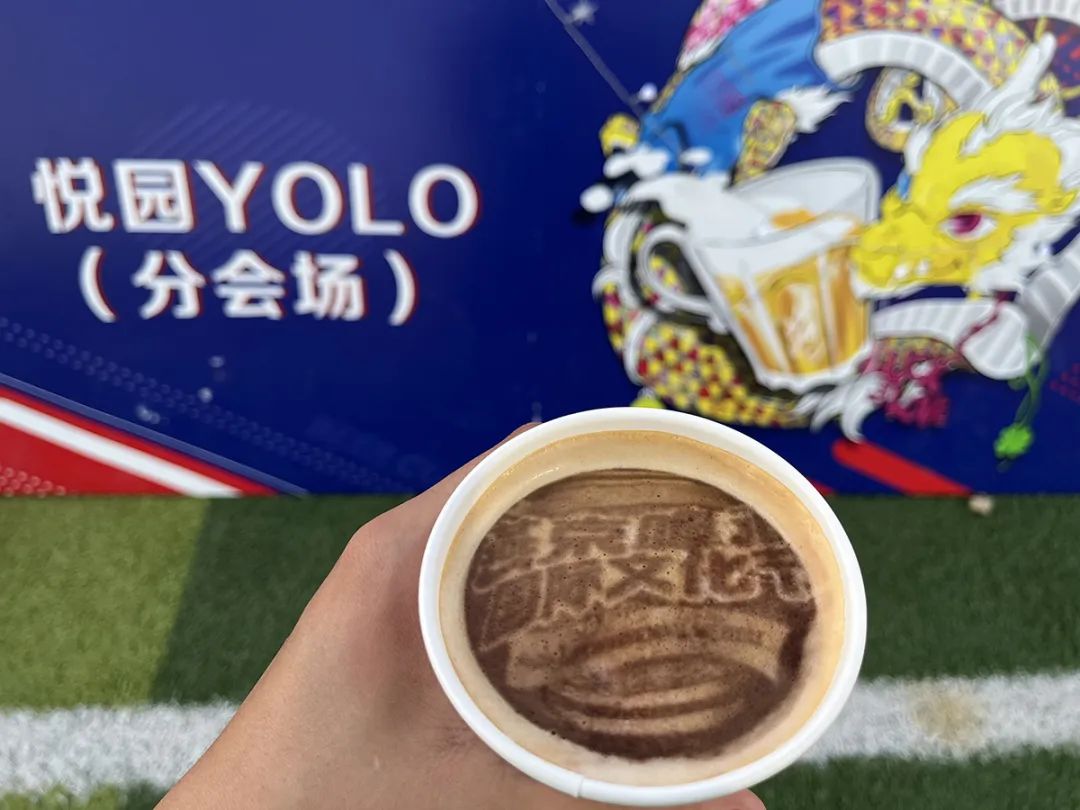 悦园YOLO分会场设置的“科技咖啡机”也成为了现场的焦点。市民通过咖啡机上传自己喜爱的图片后,机器人会以拉花的形式将图片内容“打印”在咖啡上,浓浓的科技感扑面而来。