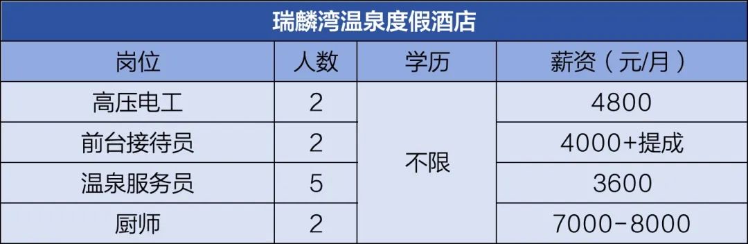 工作地点:南彩镇瑞麟湾温泉度假酒店