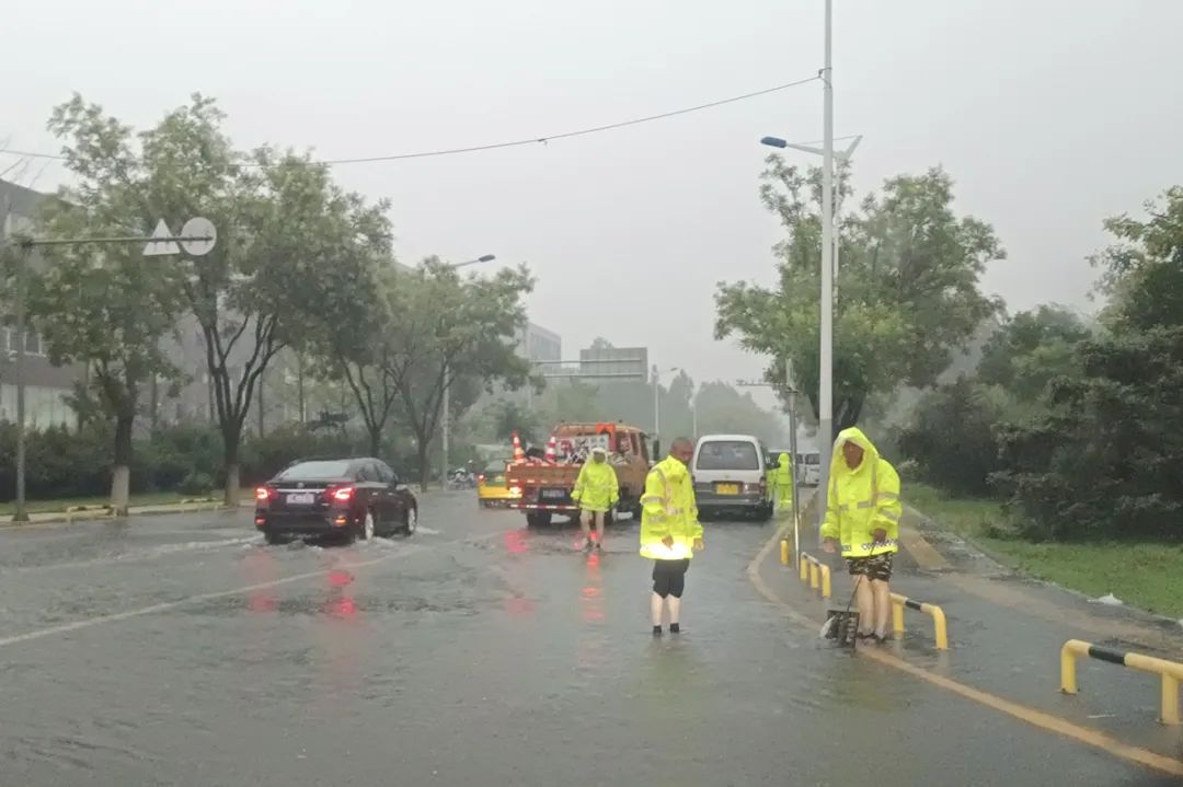 顺义公路分局对职工和养护单位人员混编分组,安排道路、绿化、交通工程三个专业防汛队伍共计381人和90台机械,在易积水路段、地质灾害隐患点位等重点点位值守。降雨时段值守人员实时观测积水数据,对现场积水情况做出快速响应。此外,分局安排巡查人员对管养范围内桥梁、交通标志、泵站下游等重点部位开展不间断巡查,确保突发情况及时发现、及时处置。