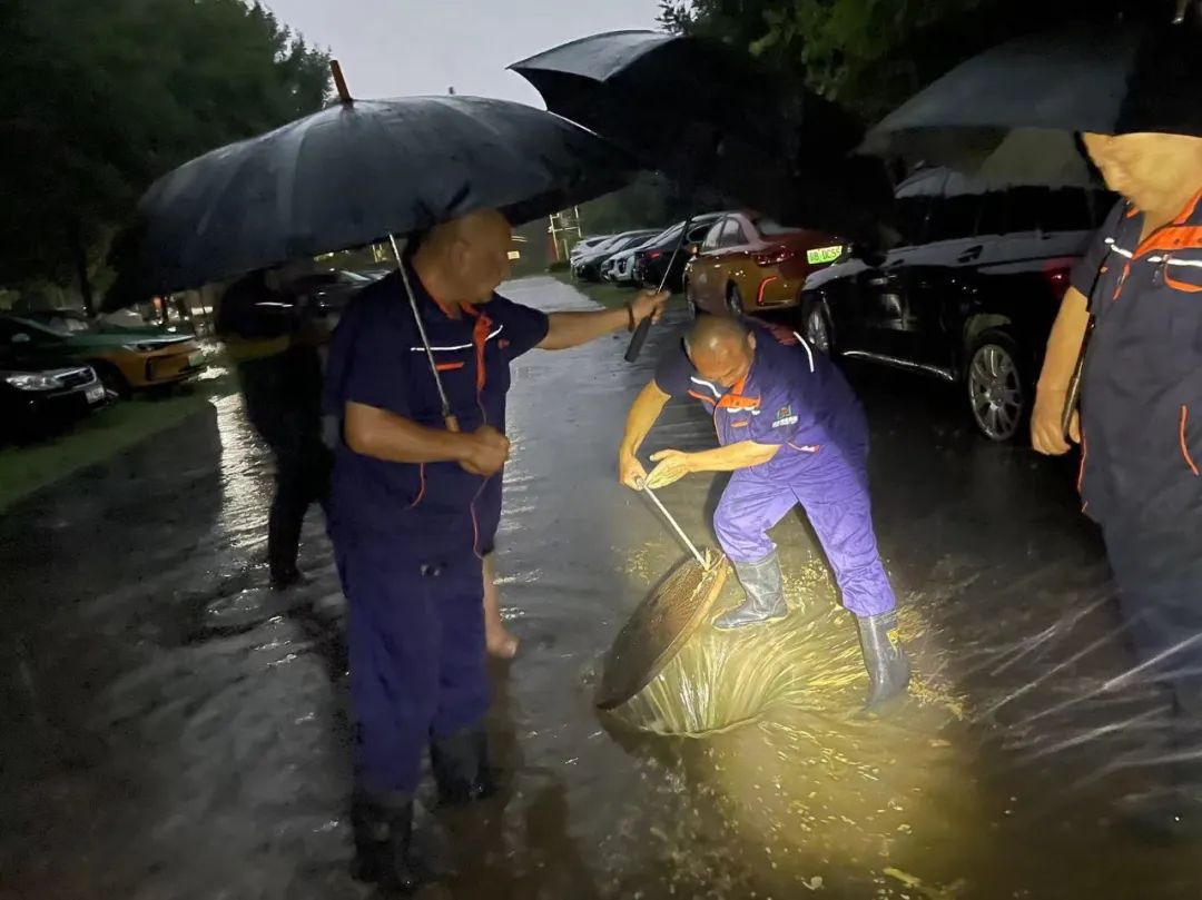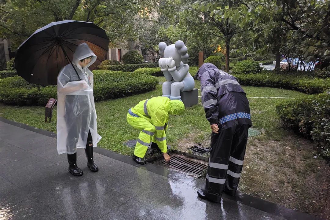 大龙控股设立防汛应急指挥小组,制定防汛应急预案,备齐沙袋、水泵、雨衣、雨鞋、手电筒等防汛物资,保证及时调用、有效使用;加大对所属区域的巡查强度,重点聚焦在建筑工地、地下车库等易积水点位,全面深入排查。同时,清淤疏通排水管道和沟渠,全力保障排水系统顺畅无阻。