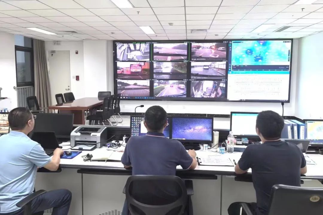工作人员通过公交智能智慧中心实时监测公交运行状况。