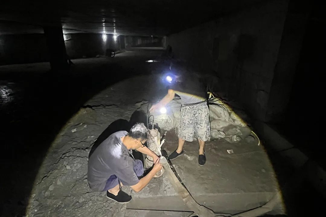 仁和镇东方太阳城社区工作人员清理地下管网。