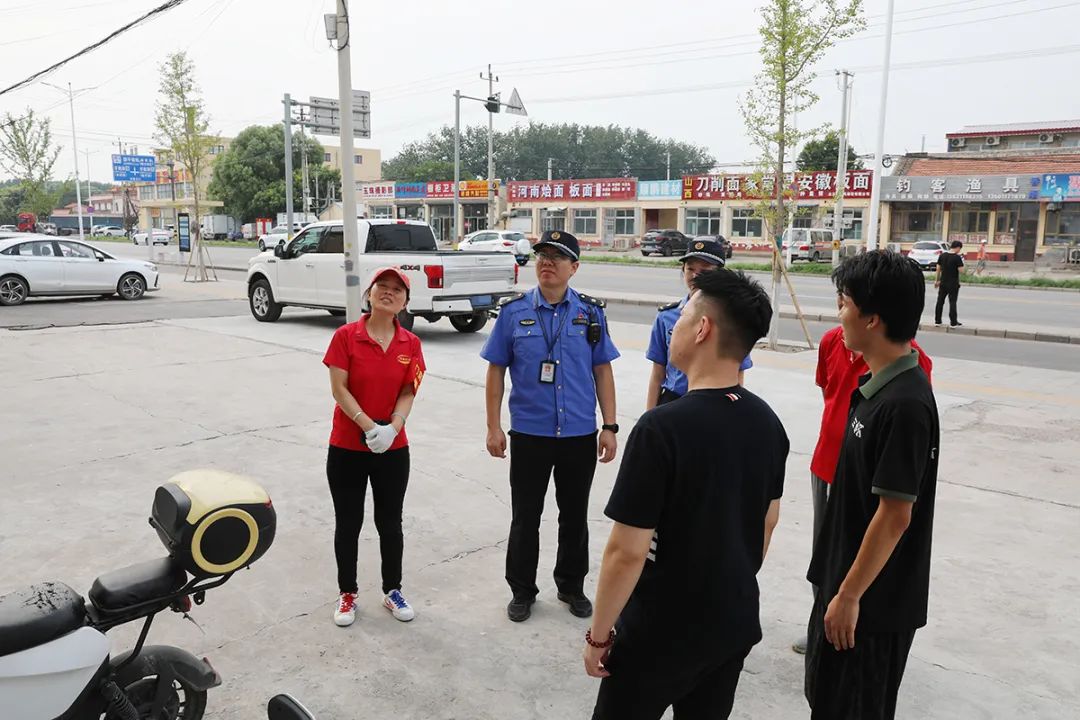 在李遂镇,位于李魏路和顺平南线的两个商户负责人作为片区组长,正在进行“门前三包”交叉检查。李遂镇综合行政执法队建立了“门前三包”自评互评机制,鼓励各片区组长进行自查自评、互查互评,采取“走出去”看优秀、“带进来”好经验和“比一比”找差距的方式,提升镇域内“门前三包”区域环境秩序水平。