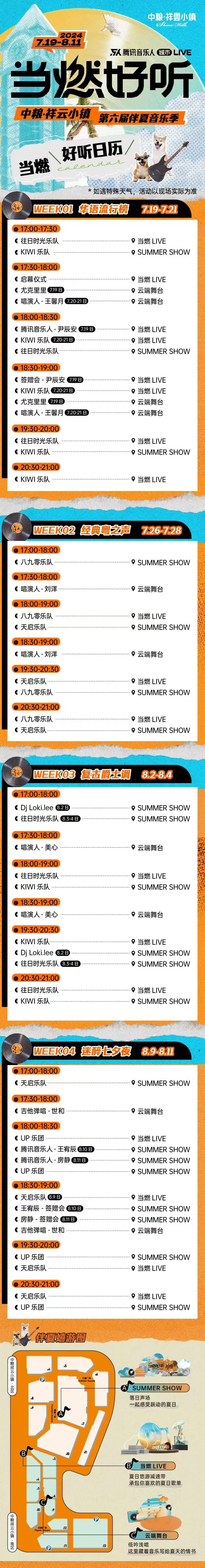 中粮·祥云小镇第六届伴夏音乐季演出排期表。