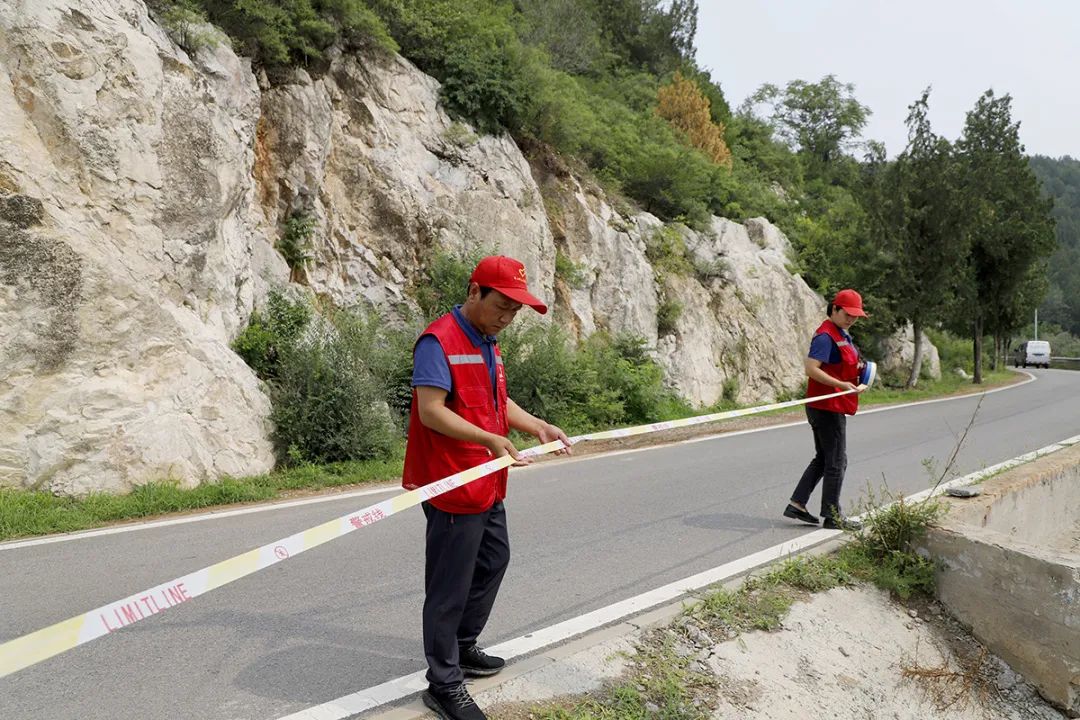 巡查途中,黄海宝发现水库旁一处警戒线意外缺失,他立即与同事拉上新的警戒线,提示过往村民注意安全。“这里比较陡,如果没有警戒线,村民一旦误闯,易发生危险。遇到这类情况,我们会及时进行处理。”黄海宝说。