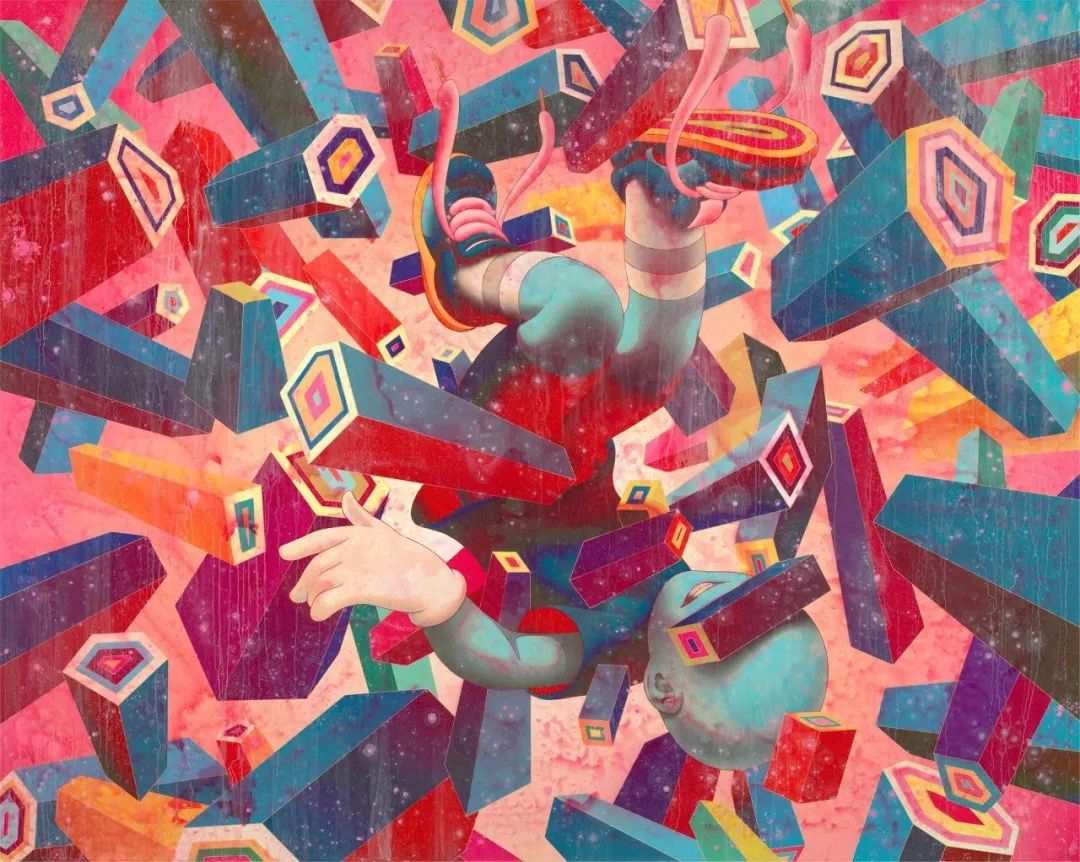 简明的艺术风格游走在东西方美学之间,致力于当代题材与中国传统卷轴画、日本木版画、文艺复兴时期肖像画、西非化妆面具、漫画和迷幻艺术等不同来源的美学技巧相融合。通过对不同风格和艺术史流派的实践,简明描绘复杂的宇宙世界中个人的广泛体验与感受。
