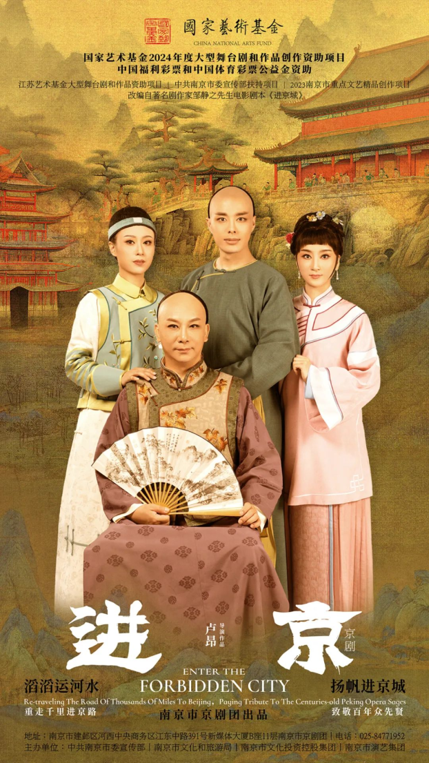 京剧《进京》改编自著名剧作家邹静之先生耗时6年潜心打磨的电影剧本《进京城》,该电影被誉为国际上“近年来海外久违了的带有中华文化特色的历史大片”,具有广泛的影响力。京剧《进京》在原著基础上进行了大胆的原创,是当代人演绎的一曲致敬京剧先贤的真情赞歌。