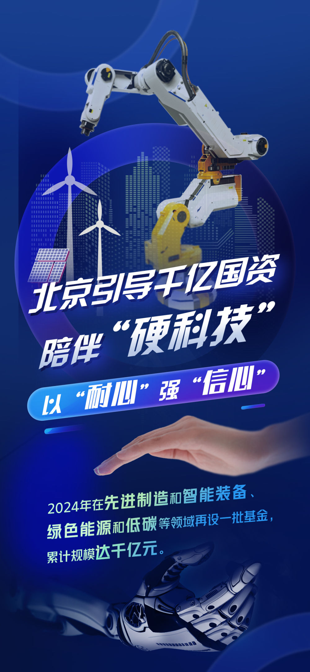 作为全国首个减量发展的超大城市,这两年,北京积极引导国资做“时间的朋友”,给力“从0到1”创新,锻造“明天的产业”。2023年12月,北京成立4支百亿级政府投资基金,瞄准机器人、人工智能、医药健康和信息产业,紧抓发展变革窗口期,力挺关键技术产业化;2024年6月,在先进制造和智能装备、绿色能源和低碳等领域再设一批基金,累计规模达千亿元。