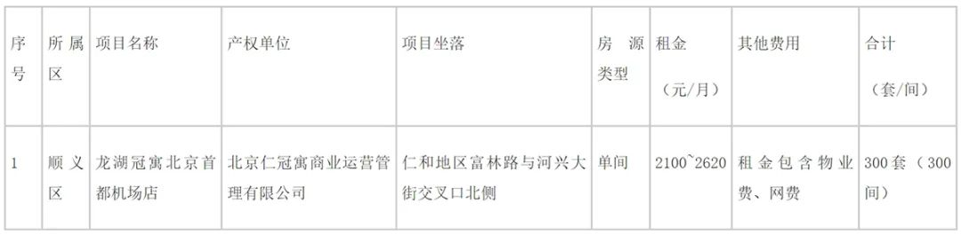 顺义区融媒体中心消息 记者从区住建委了解到,龙湖冠寓北京首都机场店保障性租赁住房项目300套房源面向毕业大学生专项配租,意向登记时间为8月2日10时至8月8日17时,符合条件的毕业大学生可进行申请。
