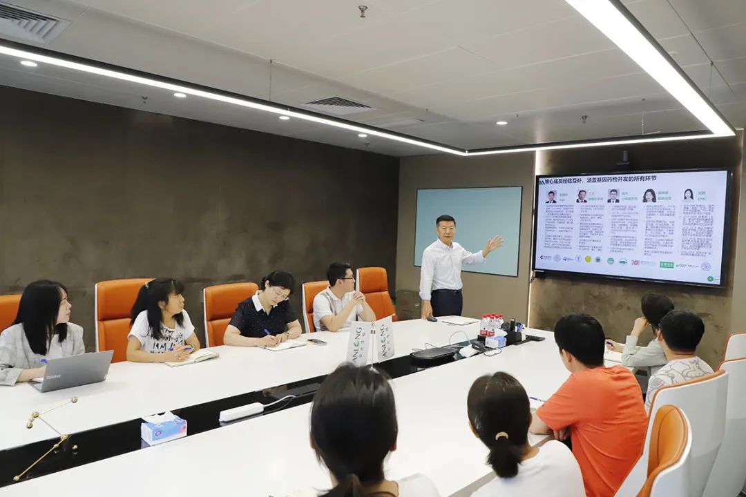 走进会议室,公司总裁赵春林正在和同事们讨论产品研发进展。安龙生物成立于2019年8月,是一家创新型药物研发公司,专注于基因技术的突破性进展,产品主要包括基因治疗药物和小核酸药物。公司在中国和全球范围内为有重大临床需求的患者研发可上市靶向治疗药物,努力为患者提供可及性、可负担性和创新性的治疗。