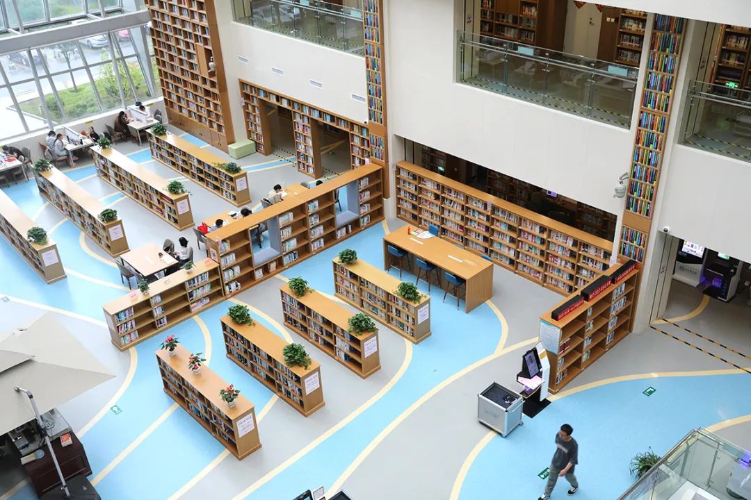 ▲顺义图书馆容纳图书文献百余万册,随处可见各类智能设备,假期来到这里,身处知识海洋,享受阅读的快乐。