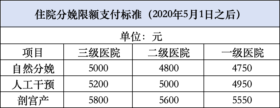 2.住院分娩的情况包括自然分娩、人工干预分娩和剖宫产手术等方式。医院级别不同,申请手工报销的支付标准是不同的。具体限额支付标准见下表: