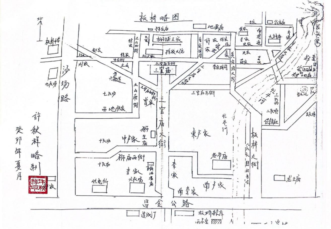 老人手绘板桥略图。