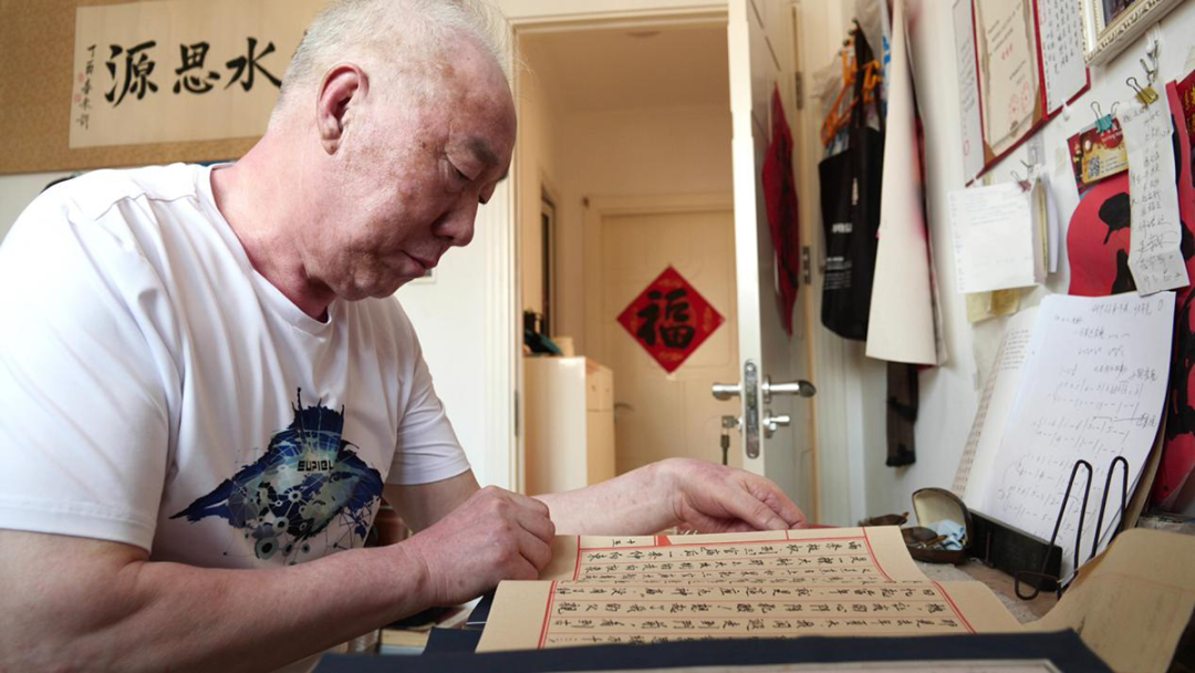 许秋祥整理手稿。