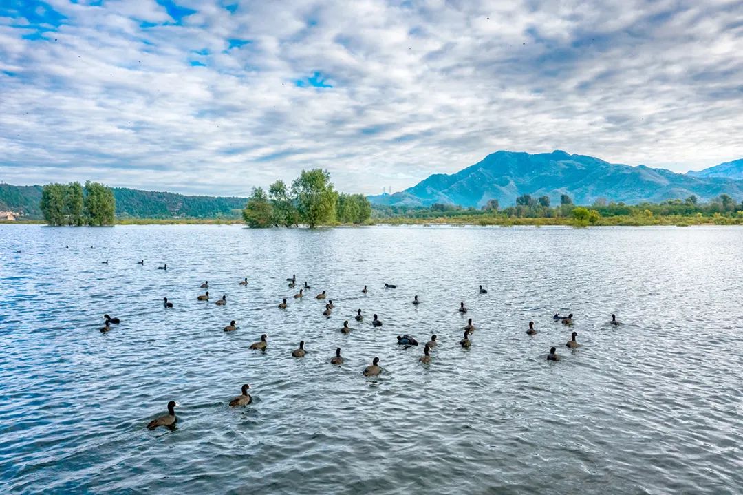 碧波荡漾、水鸟嬉戏……唐指山水库也不容错过。随着生态补水的持续开展,唐指山水库呈现出一派水清岸绿的生态美景。