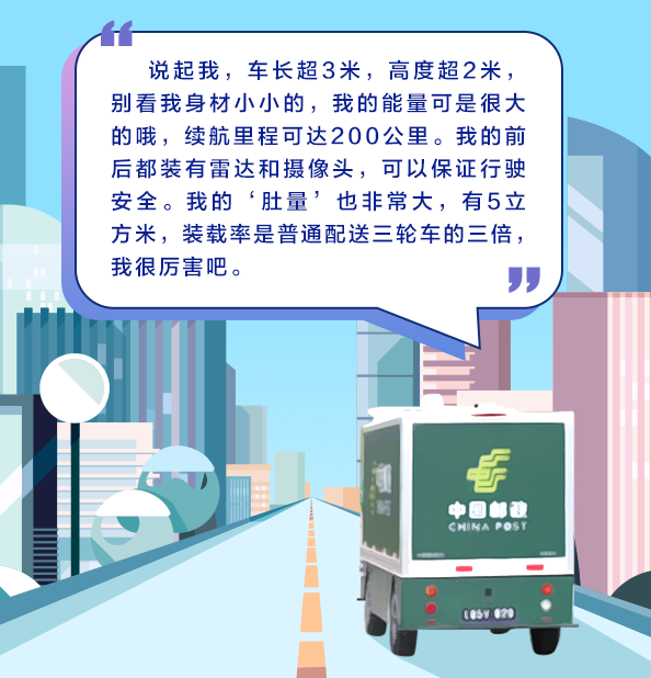 “这辆车在安全方面的配置非常高,车门上配有密封条,确保下雨时不会进水淋湿包裹,保险杠的感应装置也很灵敏,一旦碰到其他物体会做急停处理。无人配送快递车安全可靠,是我们的好帮手。”中国邮政集团有限公司北京市顺义区分公司后沙峪营业部主任翁杰介绍,“目前,无人配送快递车主要负责后沙峪营业部和代投点之间的邮件运输,往返距离约30公里,根据包裹大小可装400至600件。”