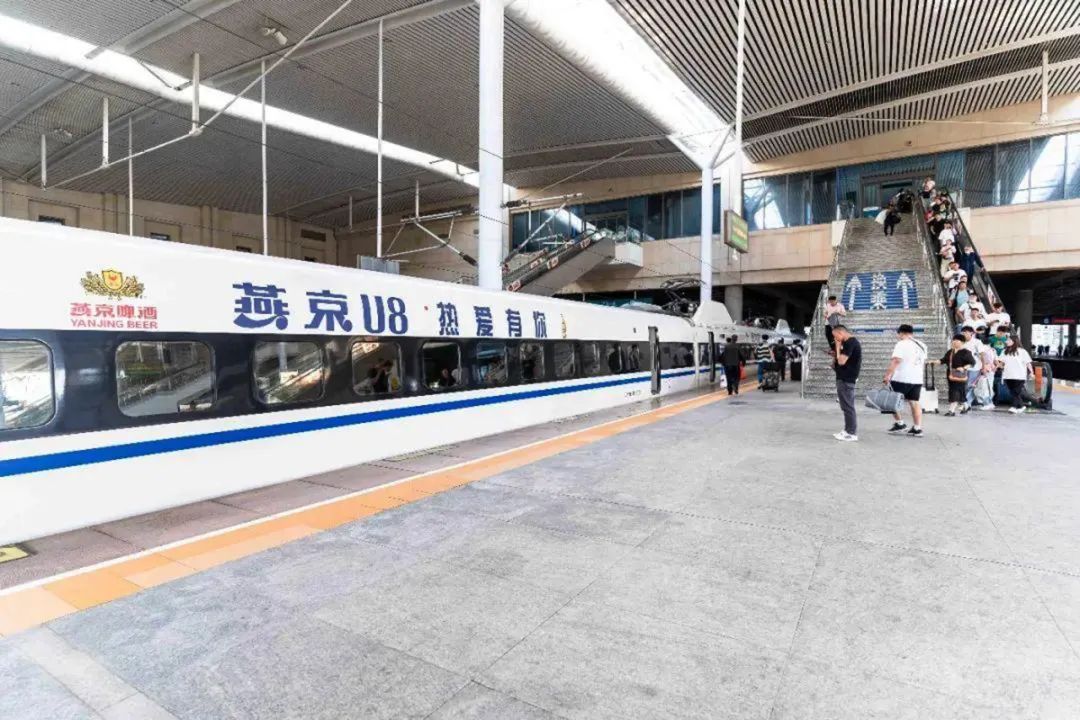 燕京啤酒冠名的高铁列车。
