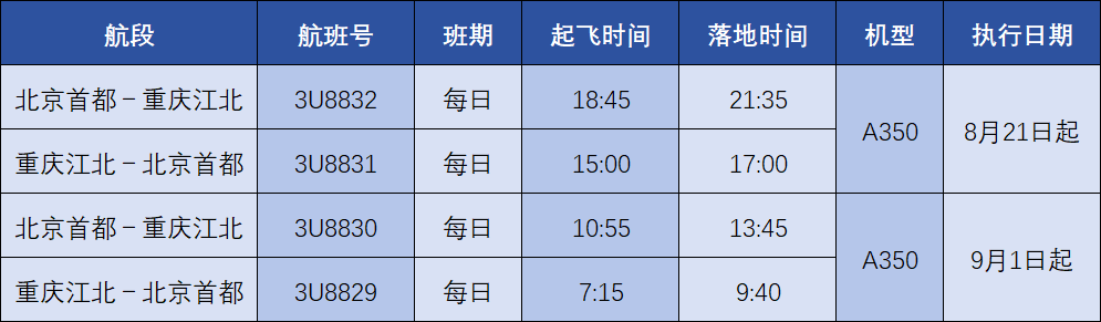 (以上信息以实际查询为准,旅客可通过四川航空全渠道了解购票)