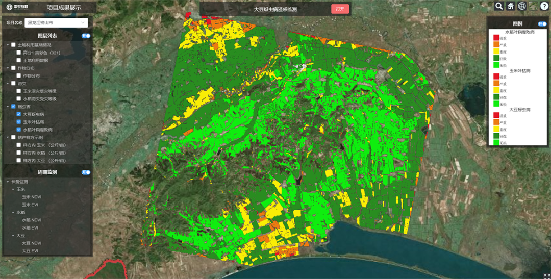 另一项业务是基于卫星遥感技术的大田种植数据监测,即耘瞳AIS系统。通过收集高分辨率卫星、高光谱卫星和气象卫星的数据,利用算法模型分析处理,为客户提供服务。何阳说:“这项业务的技术关键在于提升卫星影像分析模型的准确率,我们对粮食作物的监测准确率达到了99%以上,在国内处于领先水平。”