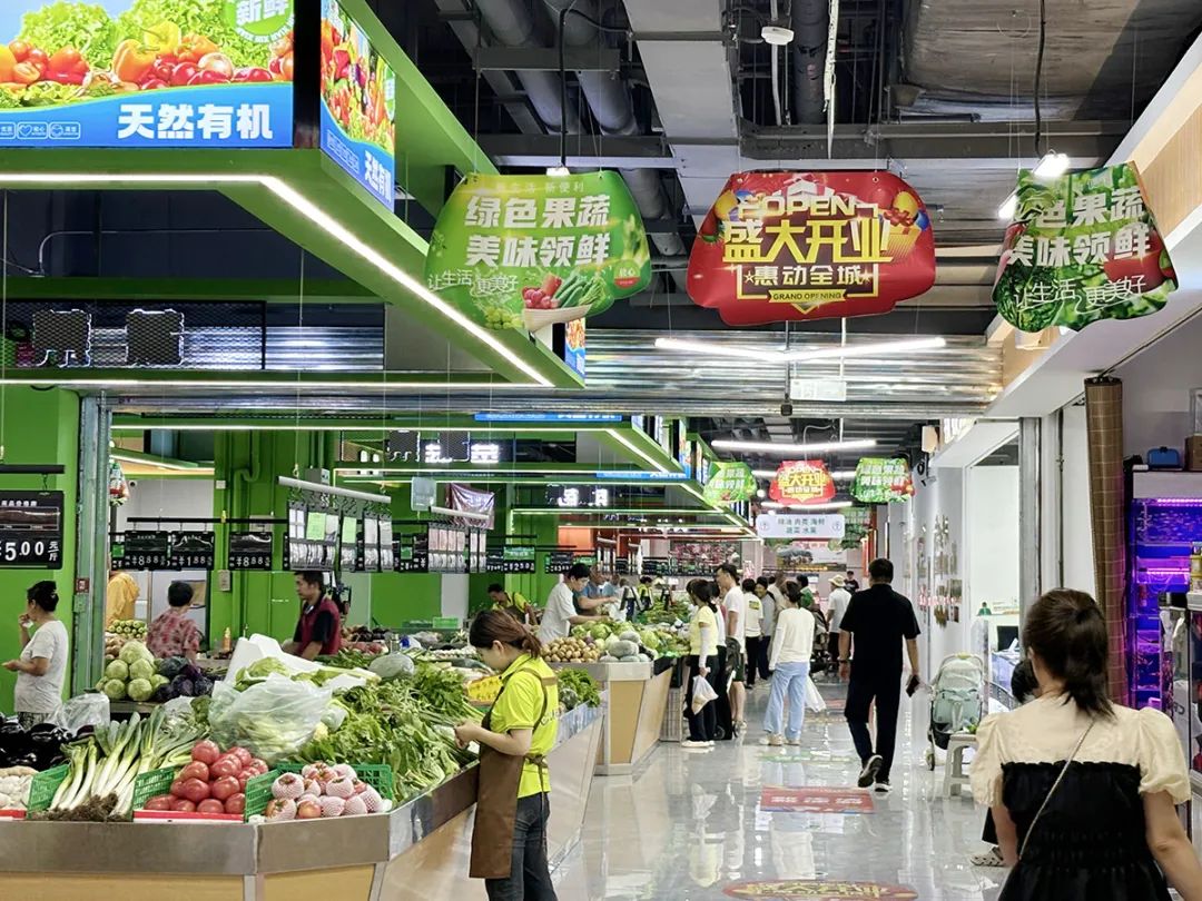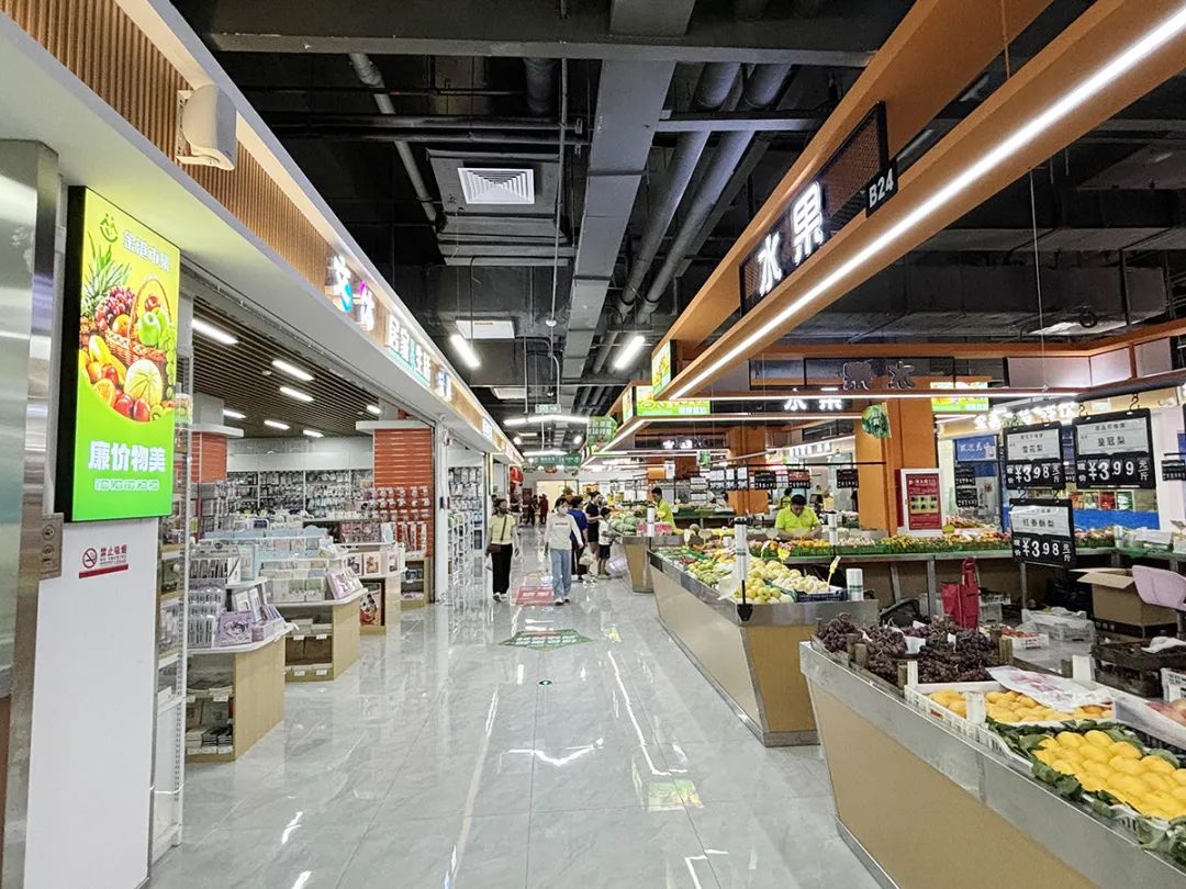 走进市集大厅,环境干净整洁、温馨舒适,充满生活气息。这里分为便民、蔬菜、水果、鲜肉、特色餐饮等十余个区域,所有商品均经过严格筛选,确保品质优良。
