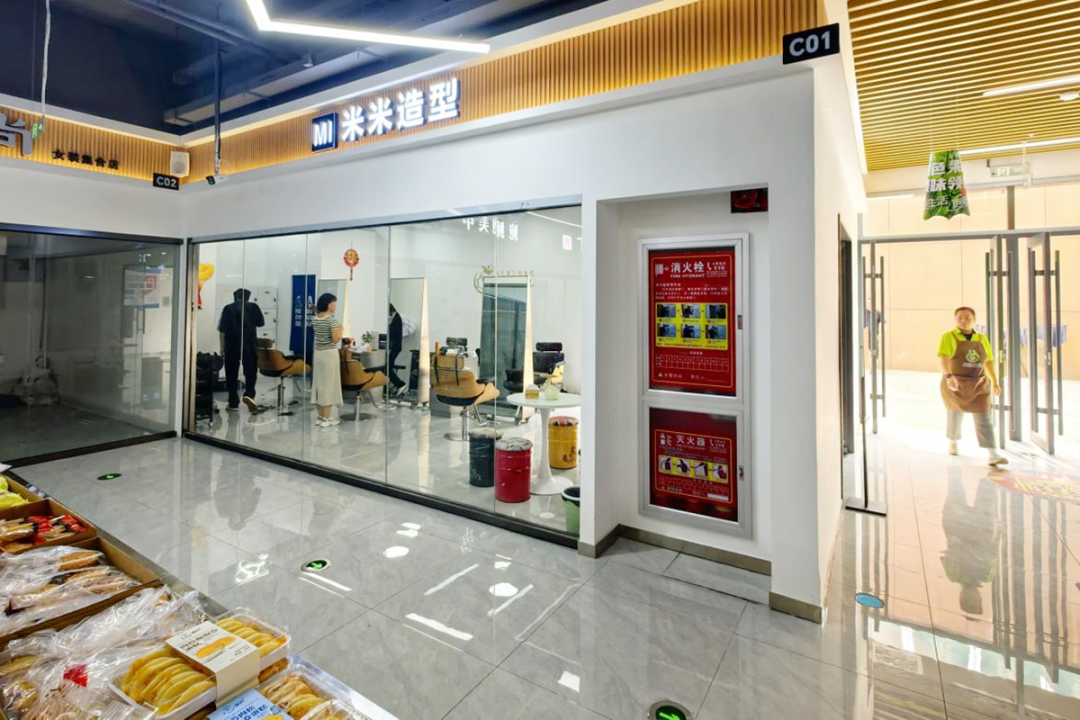 与传统市集相比,有颜有质的金港市集除了购物更加便捷,还包含了更多功能。在金港市集的便民区,理发、美甲、手机电脑维修等店铺,为市民带来更多便利。