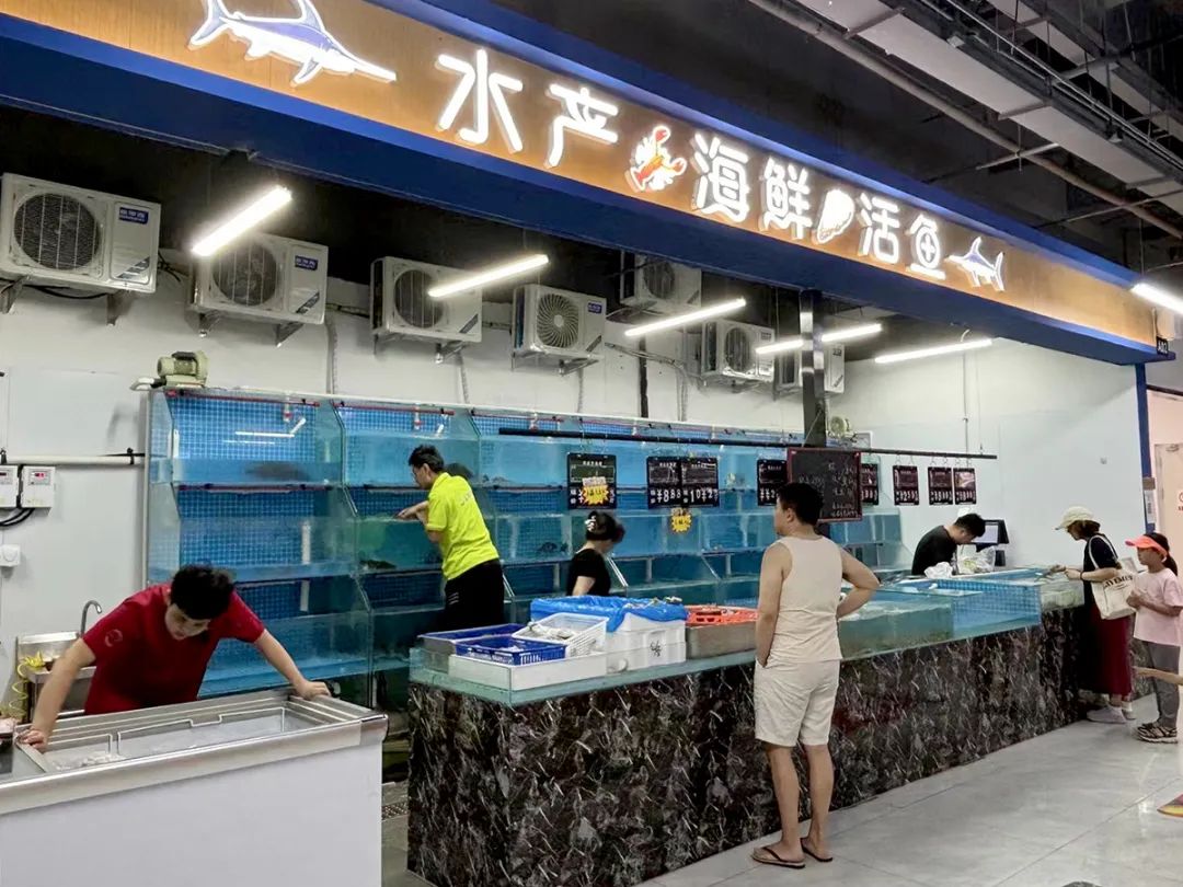 逛完蔬菜区就是海鲜和鲜肉区,活蹦乱跳的水产品、新鲜十足的肉类食材令人目不暇接。商户介绍,大部分水产品是当天凌晨上岸,每天都是新鲜上市。