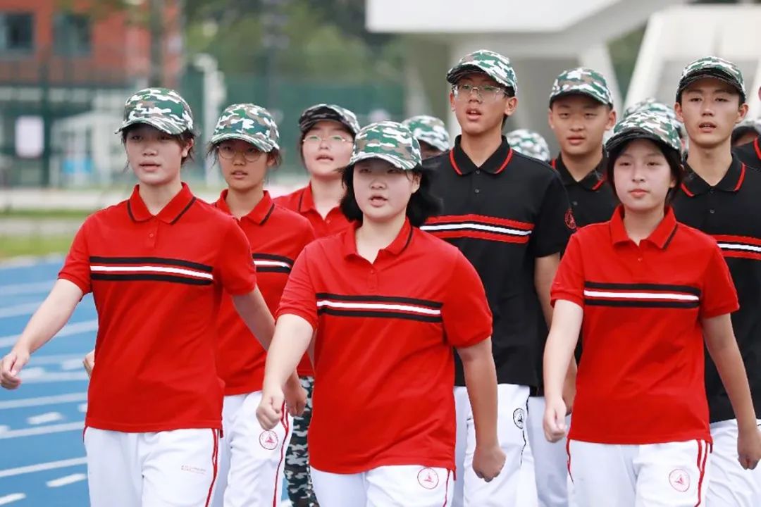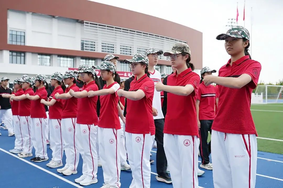 在北师大实验中学顺义学校的操场上,教官们进行了军事技能风采展示。除常规军事训练,学校还精心组织开展了包括校规校歌、朋辈教育、爱校教育在内的系列文化教育活动,引导学生深入了解校园文化,将其内化于心,外化于行,以便迅速融入学习生活。
