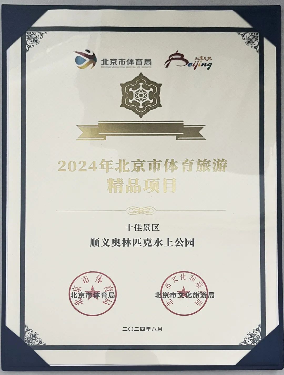 顺义奥林匹克水上公园获评“北京市体育旅游十佳精品景区”荣誉称号。
