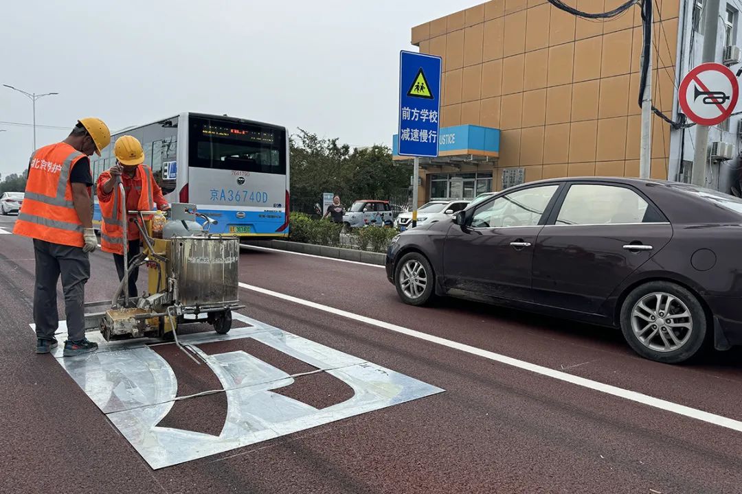 本次学校周边交通设施提升工程包括施划斑马线、停止线、菱形方块、网格线等标志标线,安装注意行人等警告标志。工程已于8月25日完工,共涉及富密路牛栏山第一小学、昌金路赵全营中心小学及幼儿园、李堡路沿河中心小学校、火寺路高丽营第二小学等36所学校。工程共施划标线711.12平方米、彩色薄层铺装174.15平方米、处理路面病害1379平方米、增设警告标志6处。