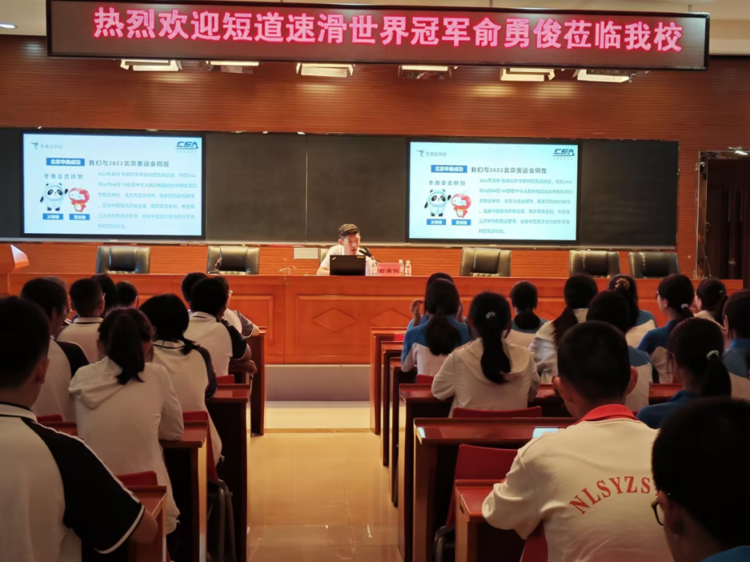 短道速滑世界冠军俞勇俊也为我校师生开展了“冠军来了”短道速滑专场讲座,他分享了自己的成长历程与夺冠经历,让与会师生们深刻感受到短道速滑的魅力和运动员的拼搏精神。他鼓励学子们珍惜当下,勇于竞争,坚定信念,追求梦想。讲座现场气氛热烈,学生们积极提问,俞勇俊耐心解答,并留下珍贵签名。此次活动不仅让学生们近距离领略了冰雪运动的风采,更激发了他们对于梦想与奋斗的无限向往,为之后的学习旅程注入了新的活力与正能量。