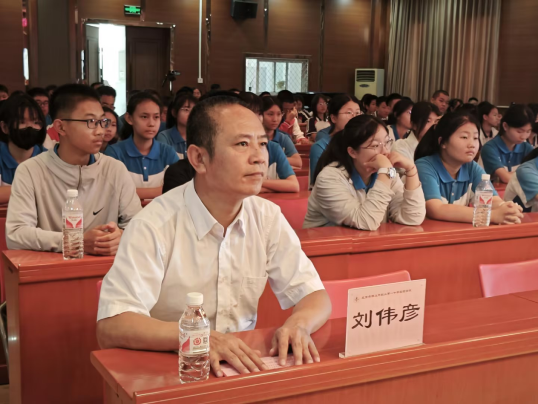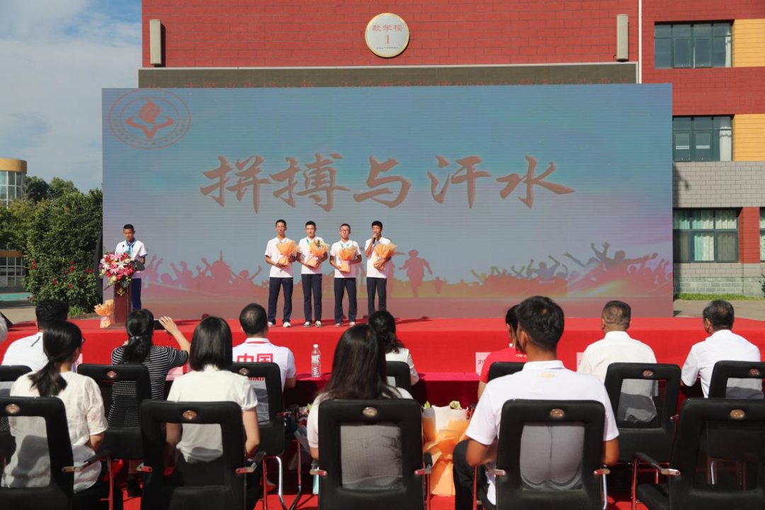 在2024年全国中学生田径锦标赛中获奖并打破全国记录的原初三年级运动员刘继、张宇涵、彭玉森、尹铭丞、叶俊熙相继上台,他们五个人牺牲了参加自己高中开学典礼的机会,回到母校与大家分享他们的奋斗故事,以梦为马,奋斗拼搏,为学弟学妹们树立了光辉的榜样。