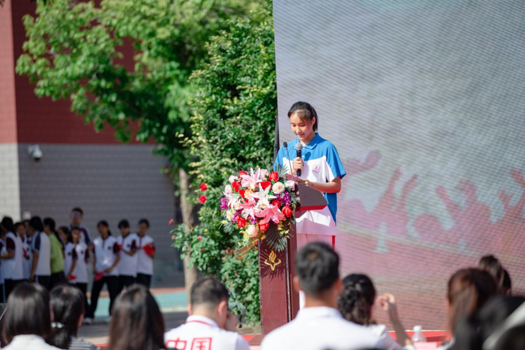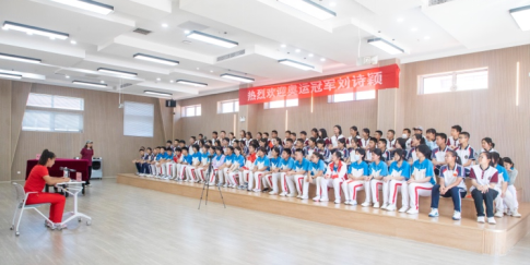 “一代人有一代人的长征,一代人有一代人的担当”,习近平总书记激励广大青年的话语时刻在我们耳边萦绕。今日年轻一代中华体育健儿在奥运会上传递的正能量,已超越体育本身,为青少年成长赋予强大的精神力量。初三学生朱昱代表全体同学发言,表达了对奥运精神的敬仰和对未来的憧憬。她表示,新时代的青少年生逢其时,重任在肩,应树立远大理想,厚植家国情怀,为国家和社会的发展贡献青春力量。