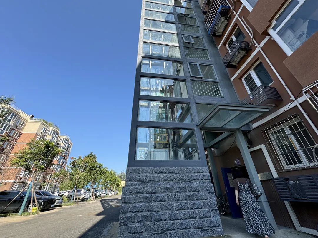记者来到杨镇双阳社区7号楼前看到,1部新加装电梯周围已建起了围挡,施工人员正在进行钢结构施工。2部新加装的电梯已投入使用,居民告别了“爬楼时代”。“上了年纪,上下楼走楼梯太累。现在加装了电梯,买菜、散步,想出门就坐电梯,生活方便了很多。”居民杨霞说。